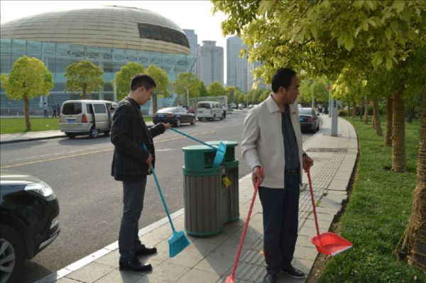 顧不上欣賞春光明媚、水靜人和的美景,碧波蕩漾的如意湖畔出現(xiàn)了建投志愿者服務(wù)隊(duì)的身影,大家拿起掃帚、垃圾袋等工具一路前行,看見沿岸偶爾零散的垃圾或不易發(fā)現(xiàn)的紙屑便主動上前進(jìn)行清理,很快,如意湖周邊的石柱、圍欄、長椅就煥然一新,廣場周邊散落的紙屑、煙頭也被清掃干凈。