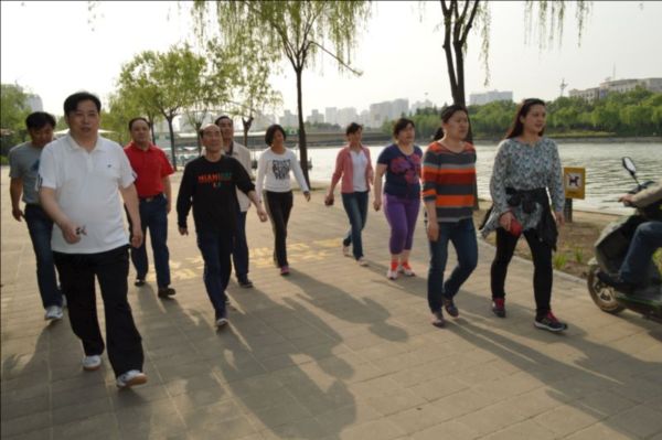 4月28日下午4:00,斜陽濃濃,微風(fēng)徐徐,在集團(tuán)公司領(lǐng)導(dǎo)秦廣遠(yuǎn)、付立文等同志的帶領(lǐng)下,近40名員工在樓下準(zhǔn)時集合,排成整齊的健步走隊(duì)伍,揮舞著“鄭州市建設(shè)投資集團(tuán)”的旗幟,精神抖擻地沿著如意湖畔闊步前行,在運(yùn)動中體驗(yàn)健康和快樂。