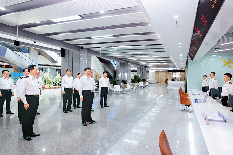 2024年10月15日至16日,中共中央總書記、國家主席、中央軍委主席習近平在福建考察。這是16日上午,習近平在中國(福建)自由貿易試驗區(qū)廈門片區(qū)考察時,同綜合服務大廳窗口工作人員親切交流。新華社記者 鞠鵬/攝