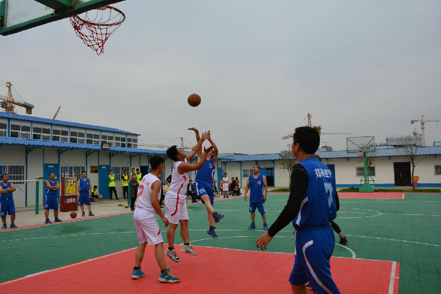 本次比賽共有文博中心兩個項目的施工及監理單位共5支球隊參加。比賽實行循環賽制,即每支球隊均需同其余4支球隊進行比賽,比賽實行積分制,每勝一場積3分,負一場積0分。每場比賽按照籃球比賽規則,共分為四節,每節10分鐘。比賽專門聘請了專業體育裁判為比賽進行執法。