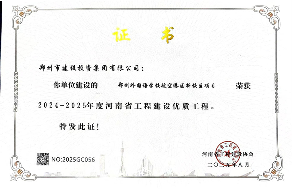 近日,由集團公司代建的鄭州外國語學校航空港區新校區項目榮獲2024-2025年度河南省工程建設優質工程榮譽。