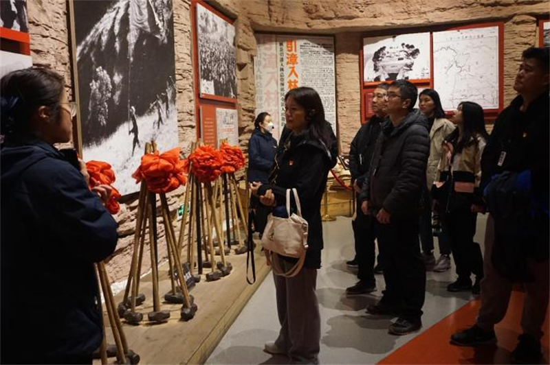 在實地踐學(xué)中,同志們走“紅飄帶”、登“水長城”、參觀紅旗渠總干渠主要工程之一青年洞,實地見證了林縣人民艱苦創(chuàng)業(yè),在懸崖峭壁之上人工開鑿天渠的偉大壯舉,并親身體驗太行山的巍峨險峻,飽覽“水長城”紅旗渠的震撼與壯麗,感受林縣人“劈開太行山”,不認命、不服輸、敢于戰(zhàn)天斗地的英雄氣概。青年洞前,同志們在莊嚴的黨旗下集體合影,激發(fā)黨性觀念,永遠牢記自己的入黨初心,表達為黨的事業(yè)奮斗終身的決心和愿望。